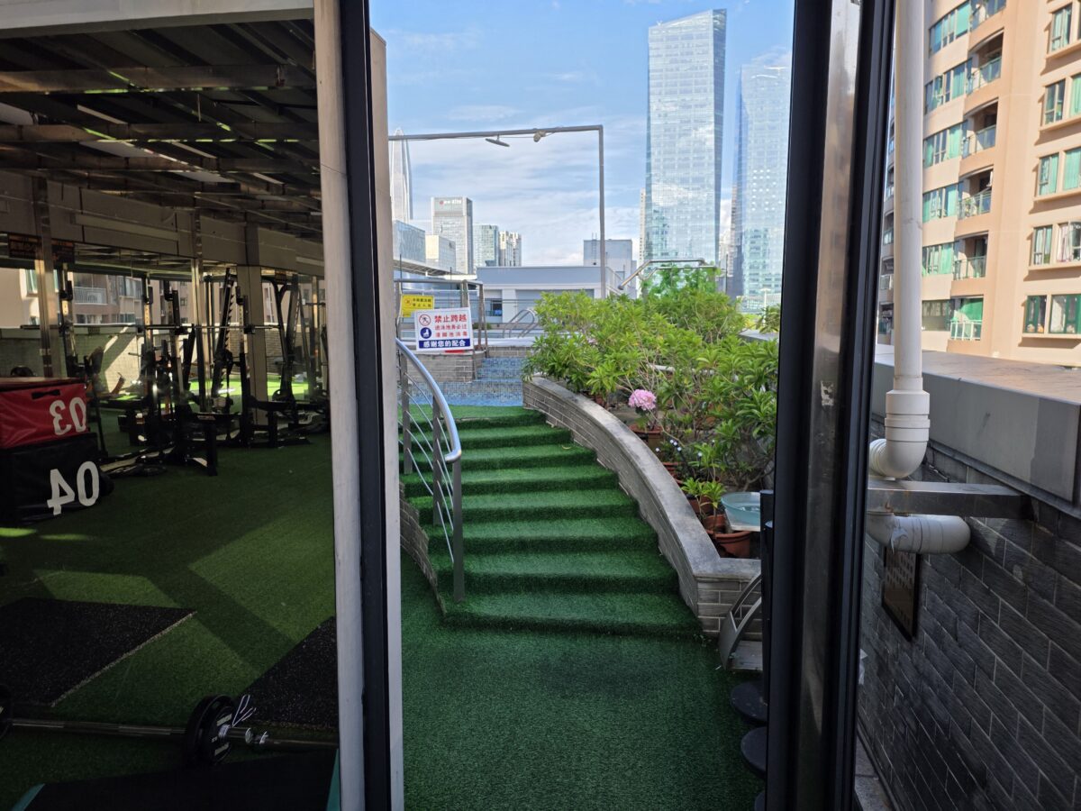 아웃도어 헬스장에서 바로 수영장으로 이어지는 통로.