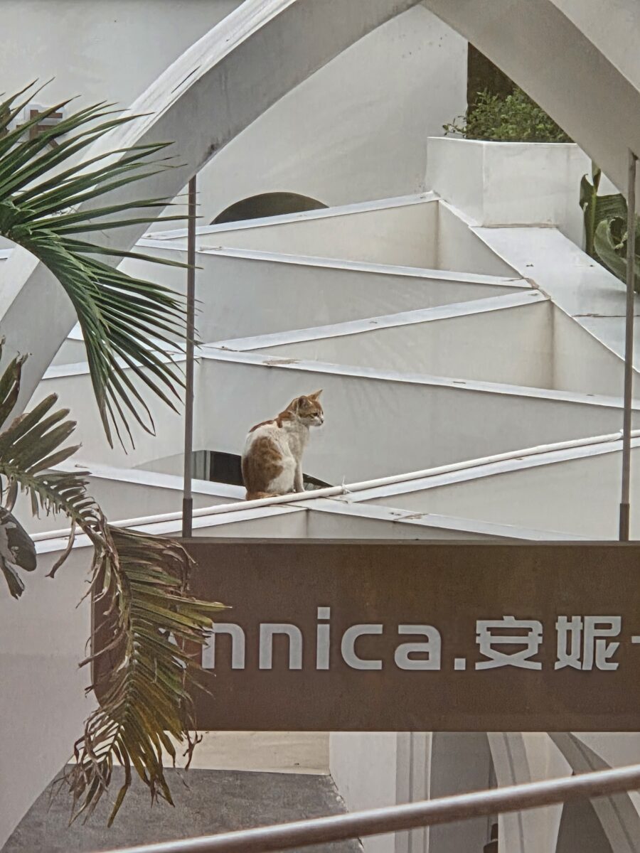 고양이는 세계 어디를 가나 제 멋대로. 호텔 입구 아치에 올라가 있음.