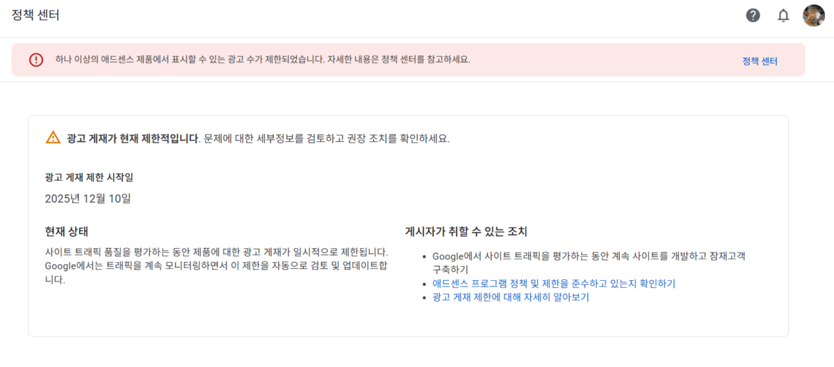 - 애드센스 광고 제한(중단)