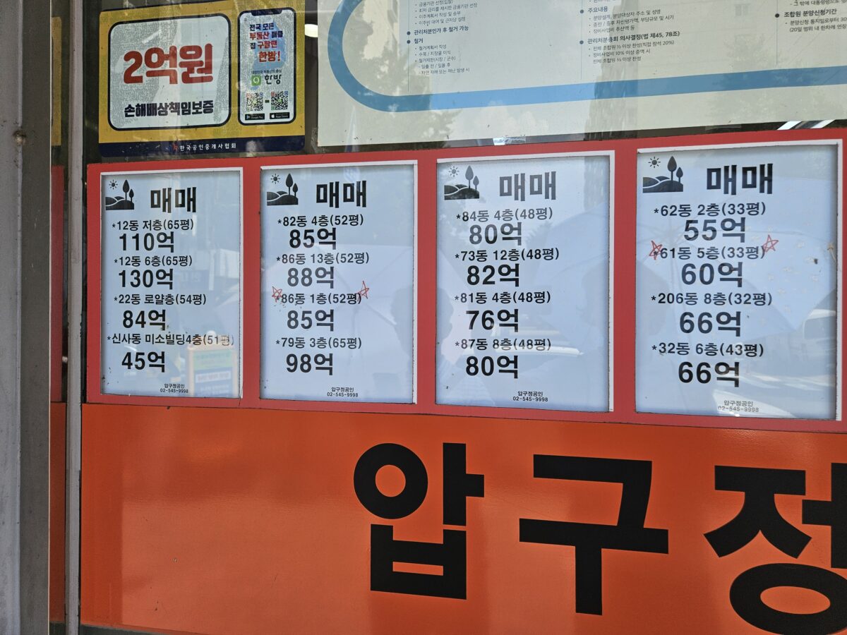 그 뜨거운 한여름 날에, 그보다 뜨거운 호가를 보고. 이런 하나의 사료라는 생각이 들어 찍어둔 한 컷. 한 낮의 기온은 정반대로 차가워졌지만, 압구정 아파트 값의 열기는 식지 않는다.